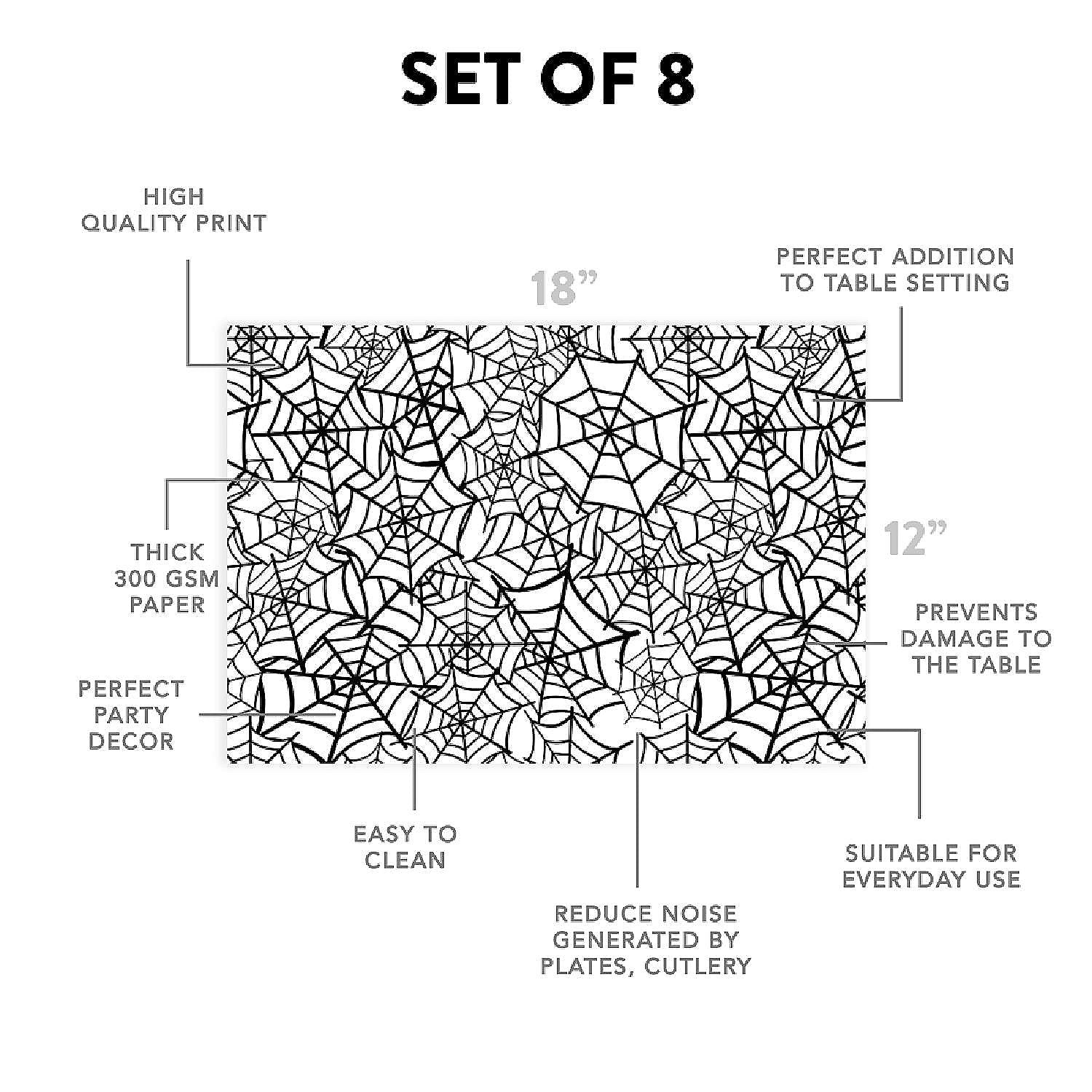 | Product Name | 12"x18" Halloween Placemats, Black Spiderwebs Disposable Cardstock Paper - 8 per pack |