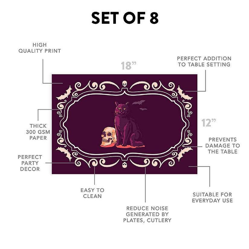 | Product Name | 12"x18" Halloween Placemats, Gothic Elegance Disposable Cardstock Paper - 8 per pack |