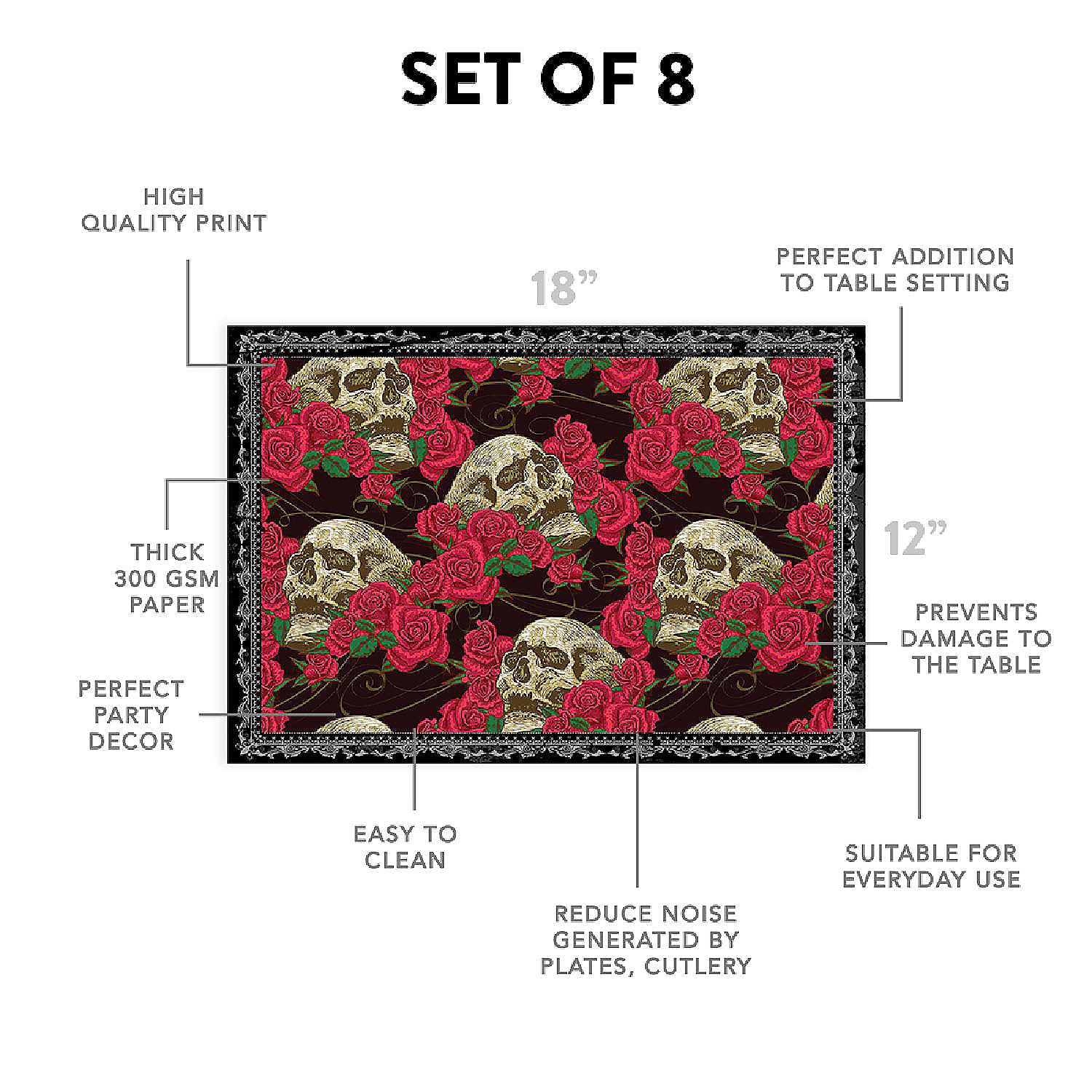 | Product Name | 12"x18" Halloween Placemats, Hauntingly Romantic Disposable Cardstock Paper - 8 per pack |