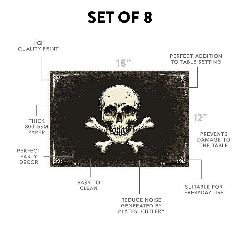 | Product Name | 12"x18" Halloween Placemats, Skull and Crossbones Disposable Cardstock Paper - 8 per pack |