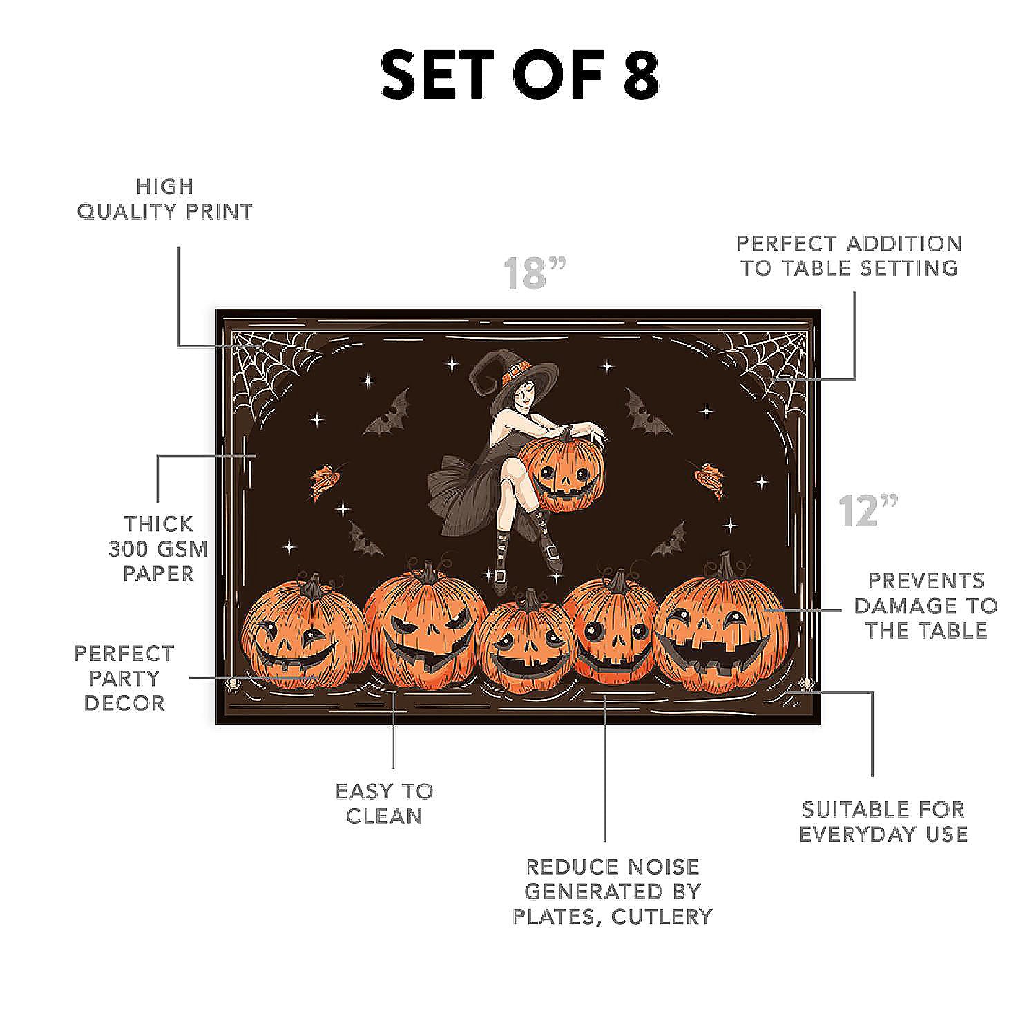 | Product Name | 12"x18" Halloween Placemats Witch's Wicked Pumpkin Patch Disposable Cardstock Paper - 8 per pack |