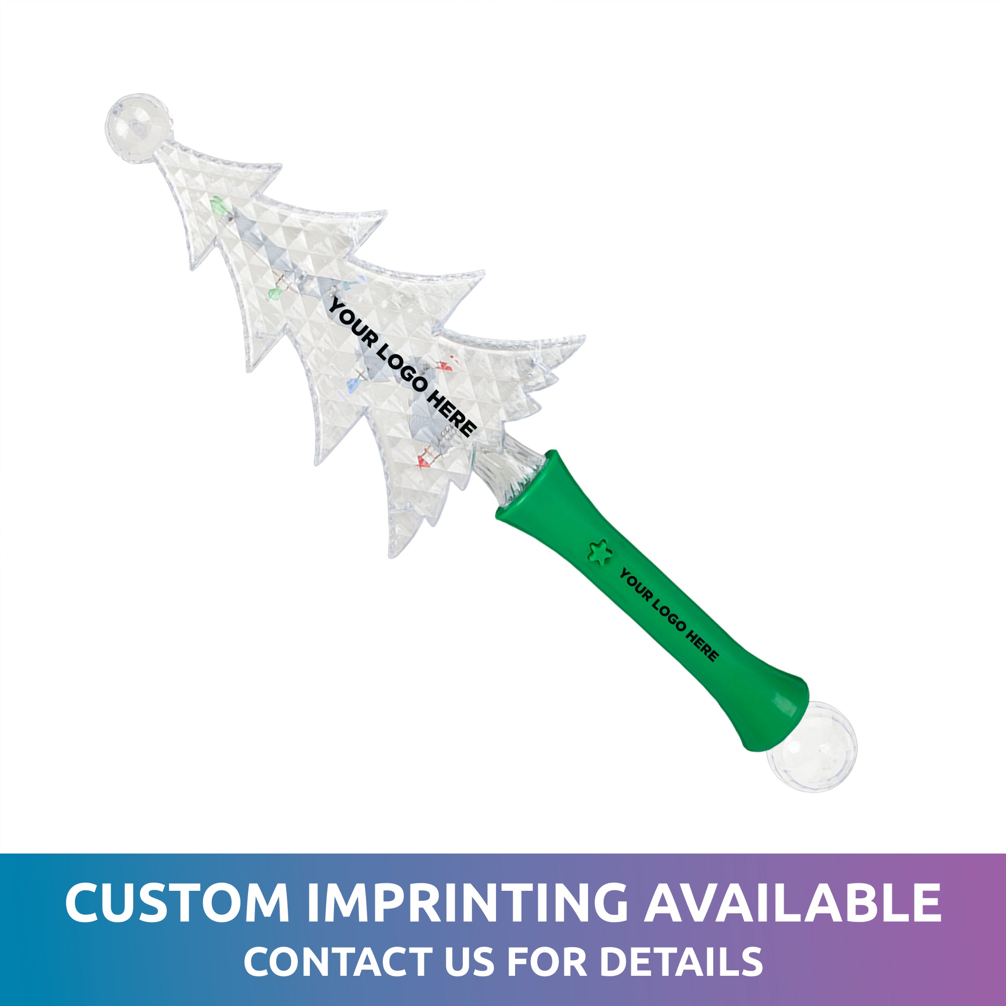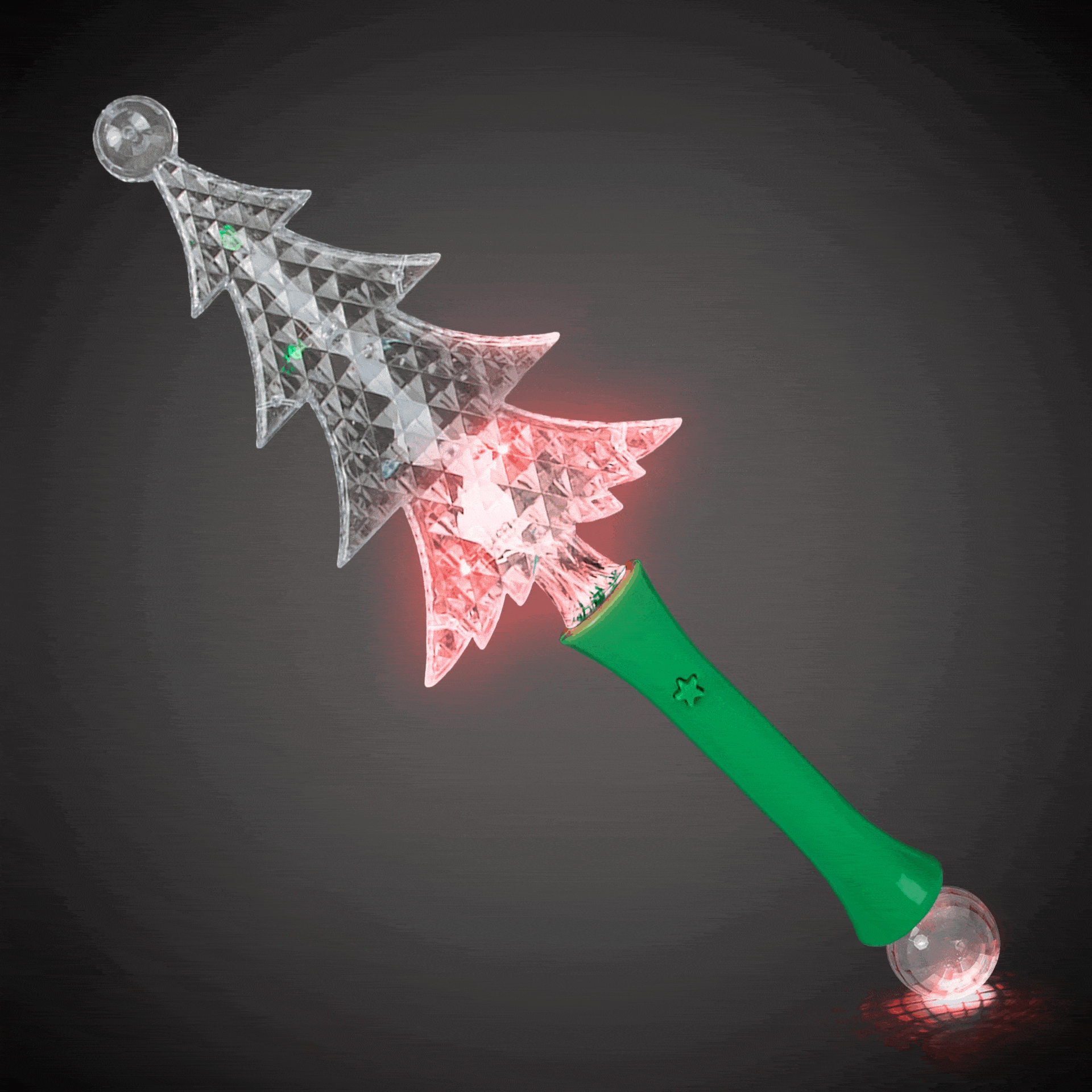 Bring holiday cheer to life with our 13" Light Up Flashing Christmas Tree Wand! This festive LED wand features a colorful Christmas tree design that lights up in dazzling multicolor patterns. With three lighting modes — fast flash, slow flash, and twinkle — it’s perfect for kids’ parties, parades, Christmas events, or as a fun stocking stuffer. Each wand is powered by (4) replaceable AG13 batteries (included and installed), ensuring hours of glowing fun, these wands make great giveaways, party favors, or retail holiday items!