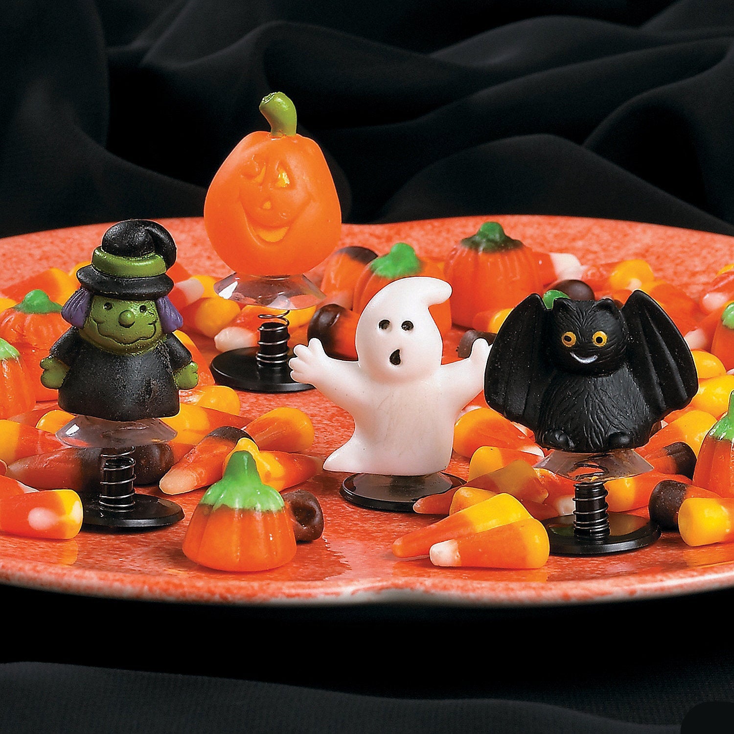Your little ghouls and goblins are sure to love pushing these vinyl characters down, then watching ’em pop back up! These bats, pumpkins, witches and ghosts make frightening favors for a haunted house party. You can also hand out these “spooktacular” toys to trick-or-treaters for a fun alternative to candy! (2 dozen per unit) 2" - 2 1/2".