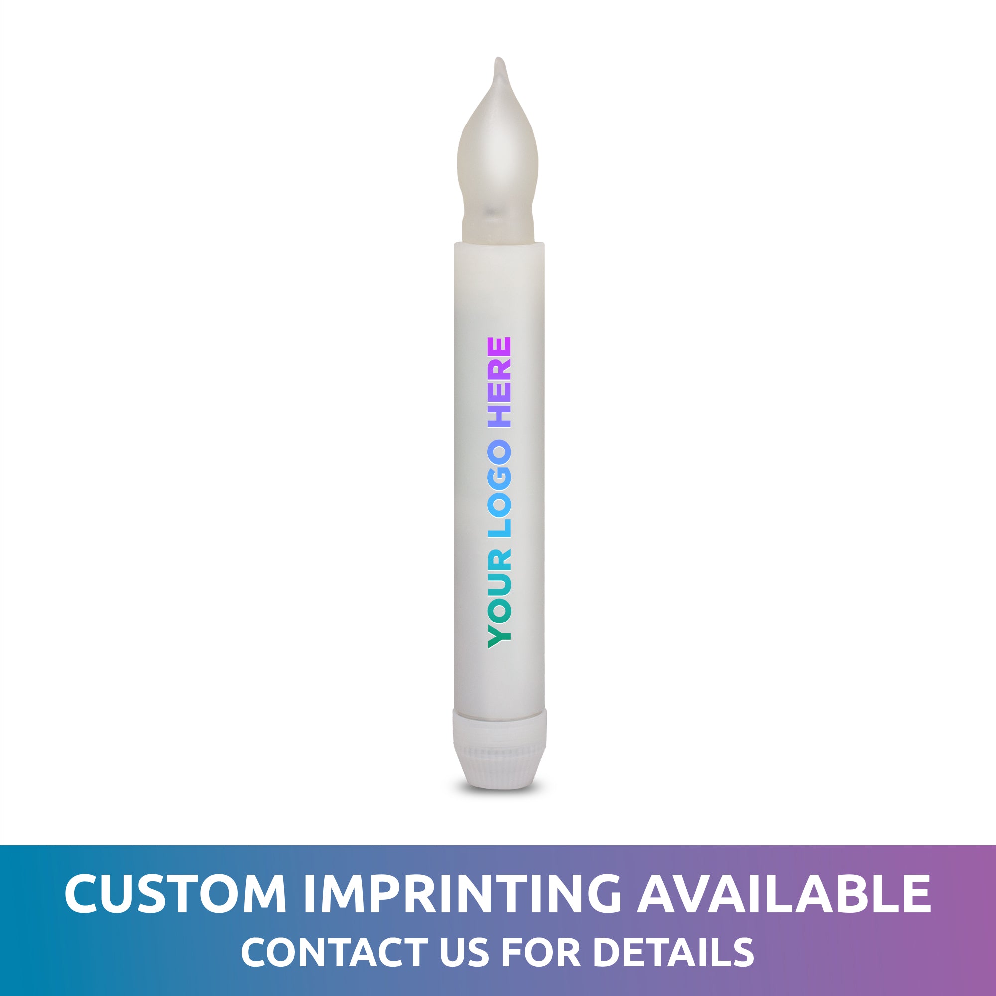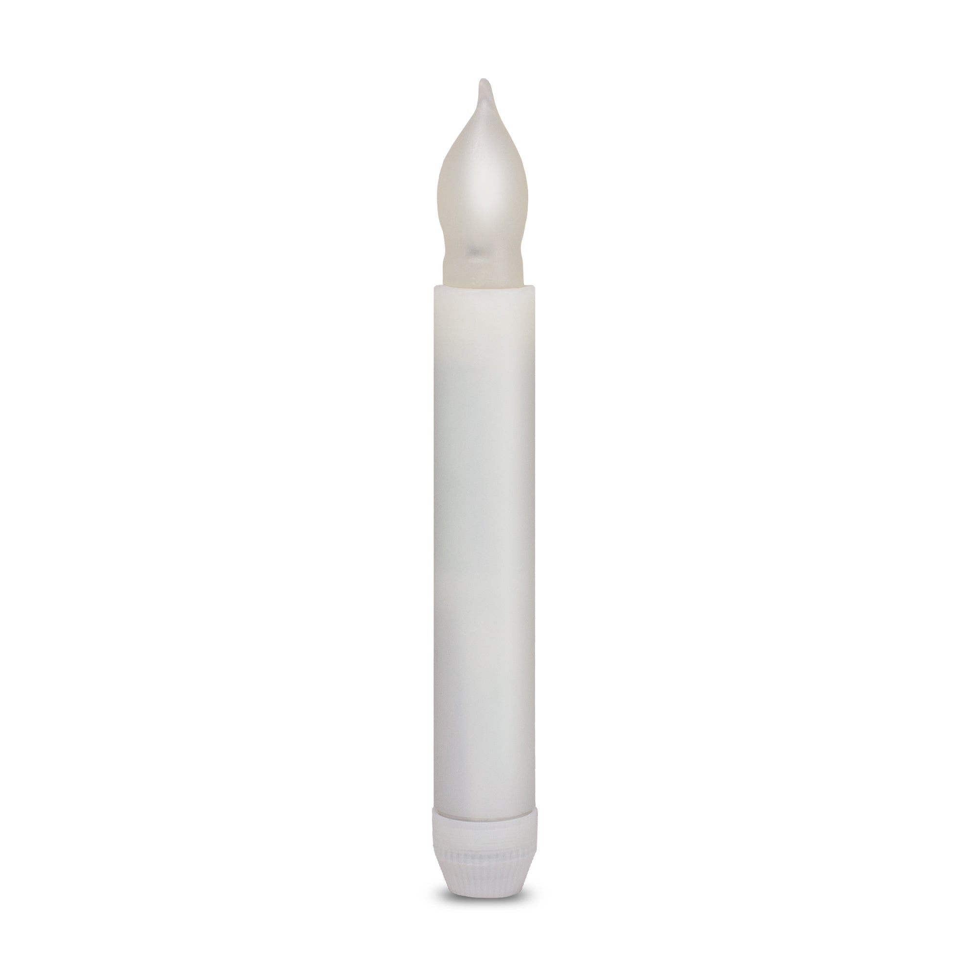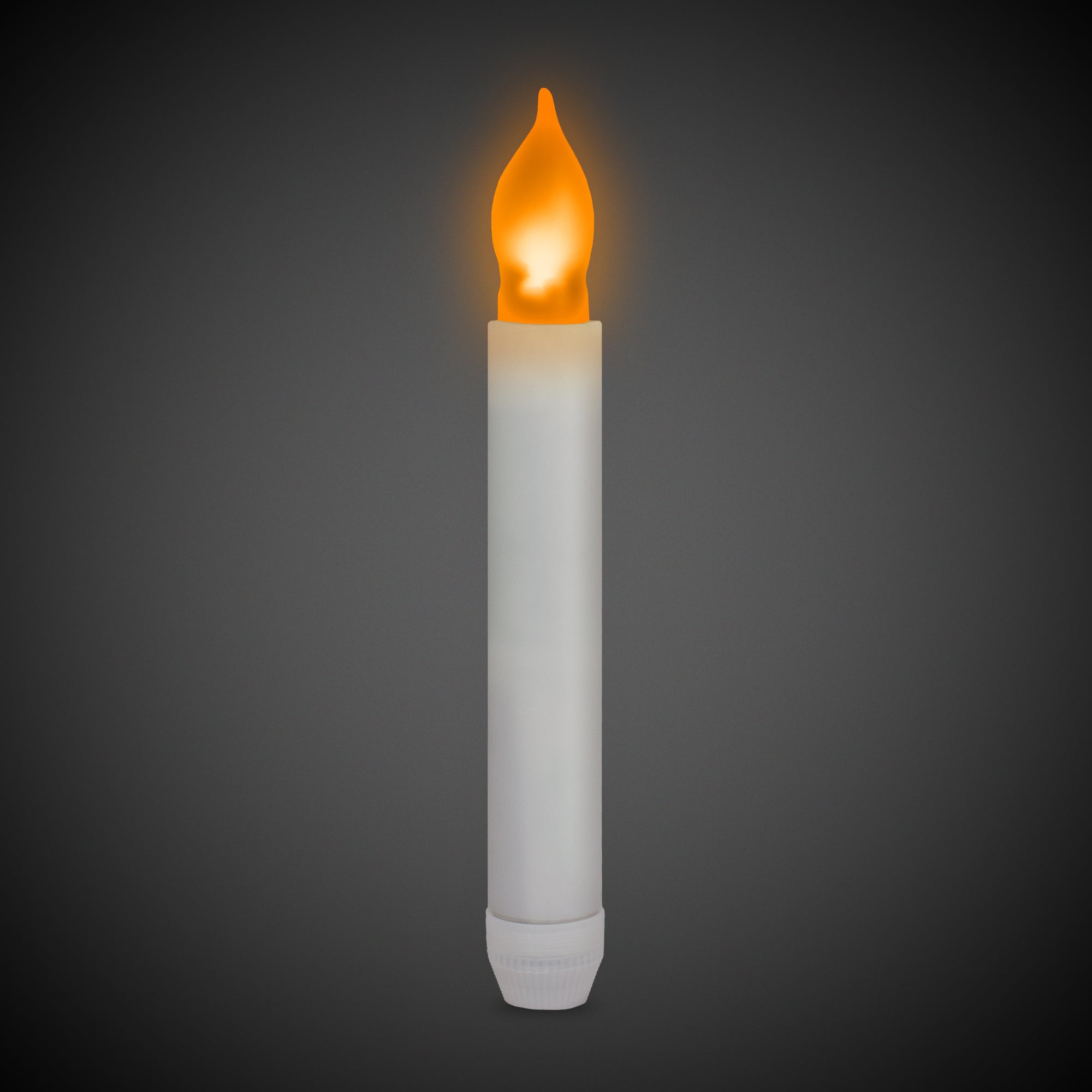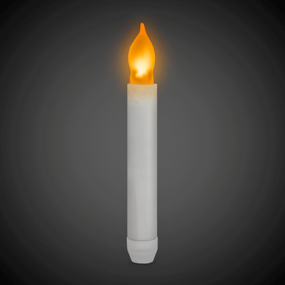 Our LED Flameless 6 1/2" Candle is a fabulous flameless option. Our LED Candle is perfect for decorating dinner tables, for weddings, Halloween, Christmas, candlelight vigils, and awareness events, camping, and concerts. This 6" 1/2" LED candle is flameless and safe to use. This safe light-up candle decoration turns on/off with a twist of the base on the bottom. A yellow LED light inside the plastic 'flame' glows, powered by the (2) included AA batteries, which are installed & replaceable.