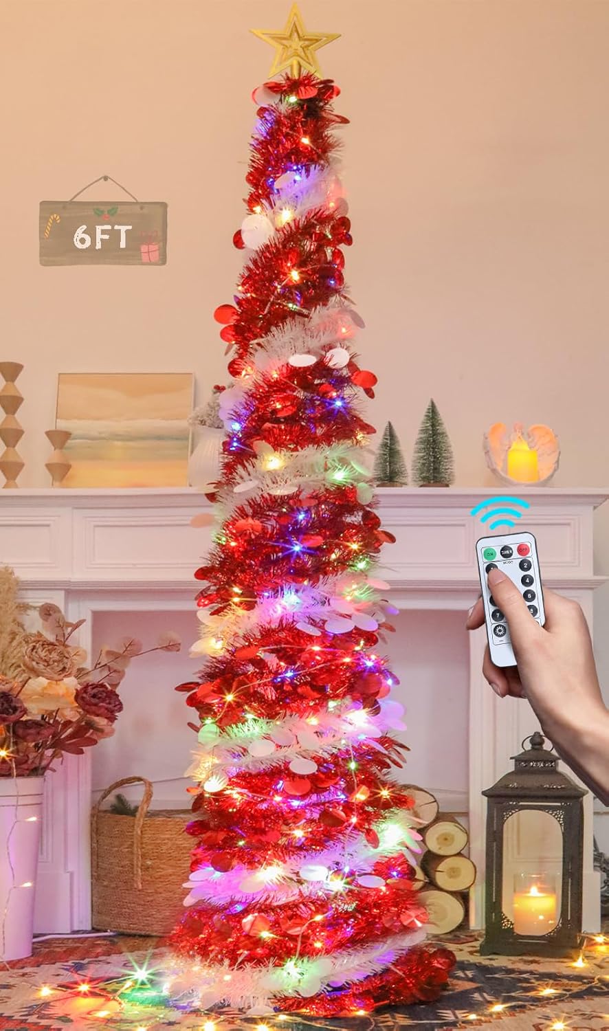 | Product Name | 6 FT White & Red Pop Up Tinsel Christmas Tree With Colored Timer Lights & Remote |