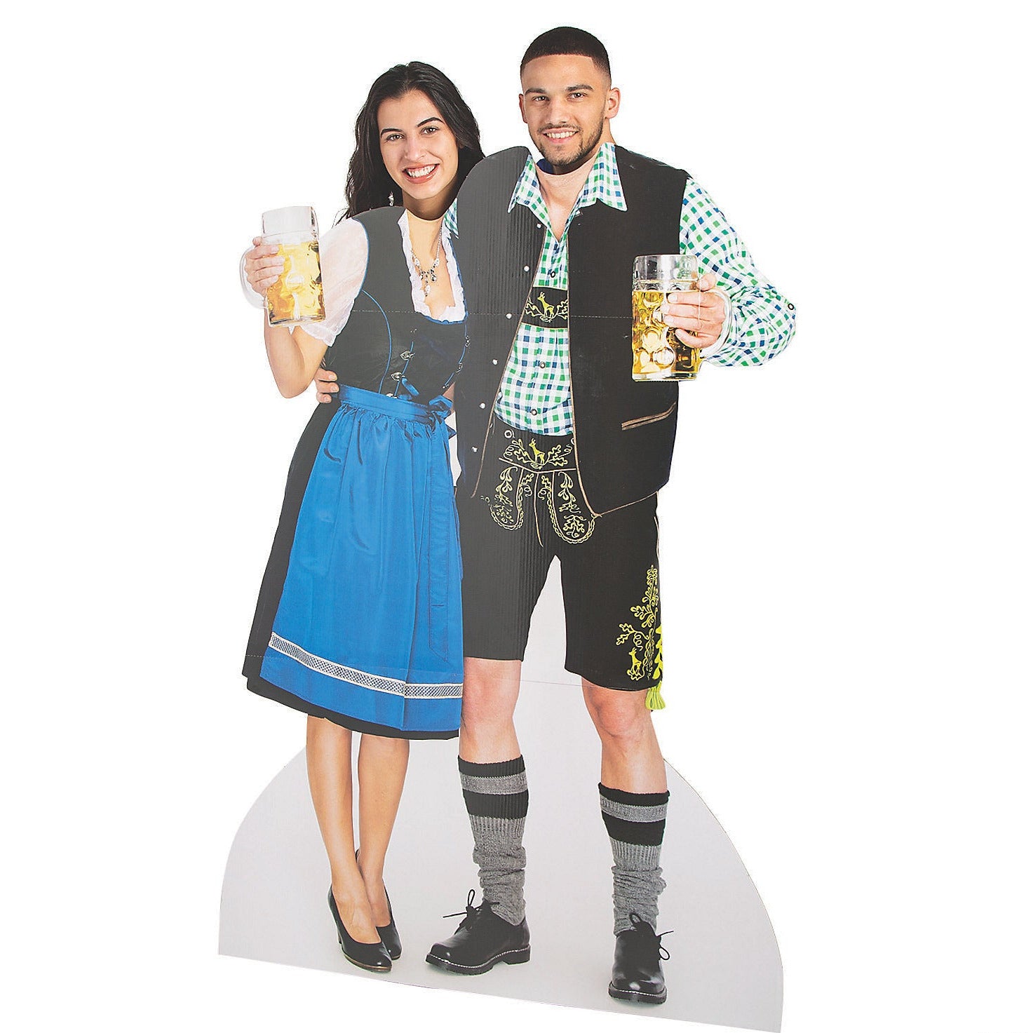 Bring the festive spirit of Munich to your celebration with the 61 1/2" Oktoberfest Couple Cardboard Cutout Stand-In Stand-Up. Perfect for themed parties, beer festivals, photo booths, and German-inspired events, this life-size stand-in features a man and woman in traditional Oktoberfest attire holding oversized beer mugs. It creates the ultimate photo opportunity, giving guests a fun and memorable way to capture the excitement of Oktoberfest at home, bars, breweries, or special events.