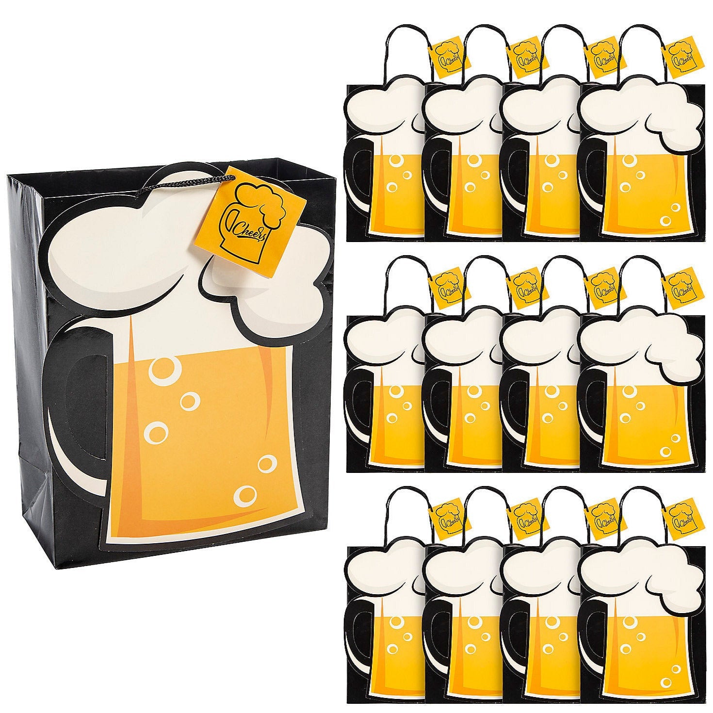 Product Name | 7 1/4" x 3 1/2" x 9" Medium Beer Mug Paper Gift Bags With Tag - 12 Per Pack |
