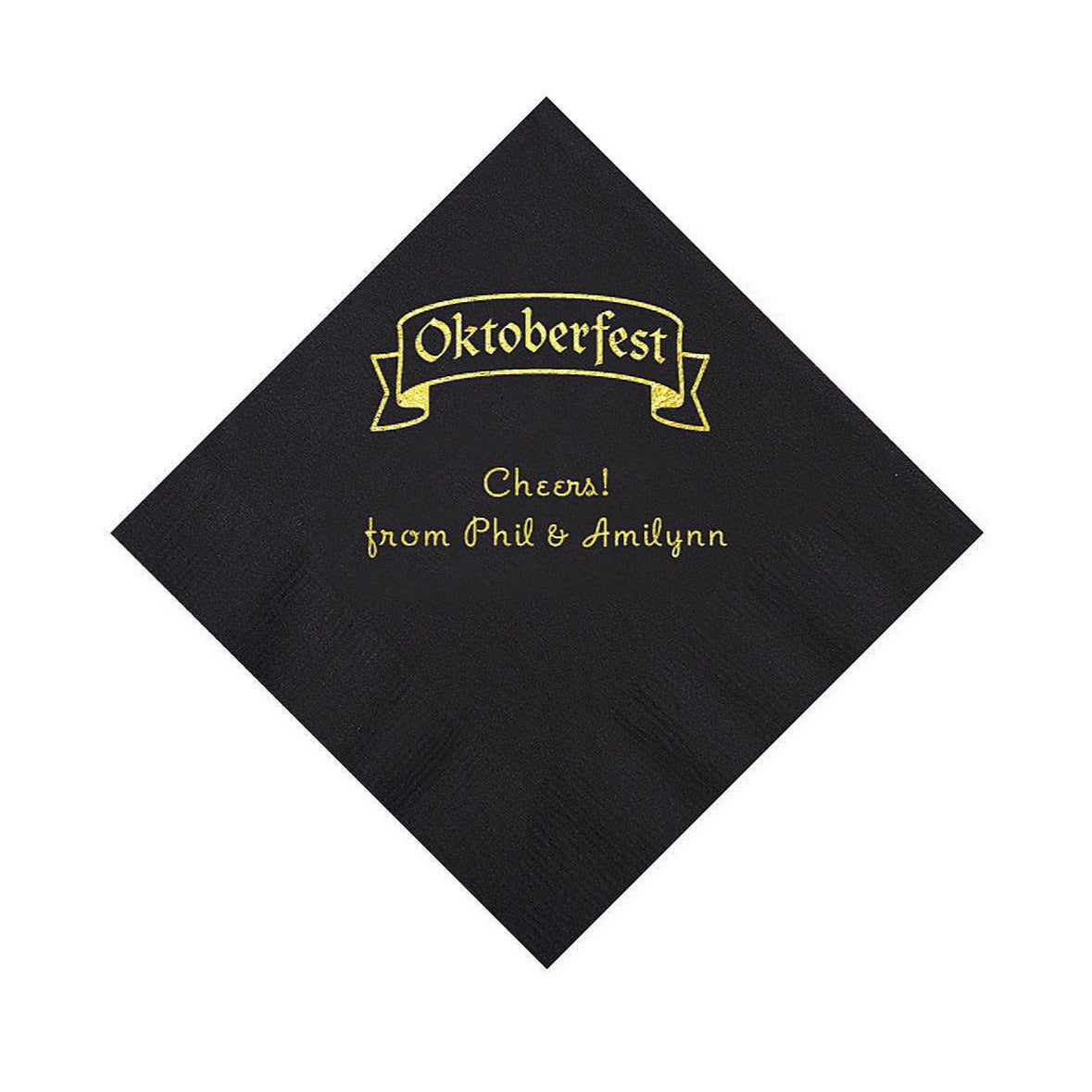 Product Name | Black Personalized Oktoberfest Beverage Napkins With Gold Foil - 50 Per Pack |