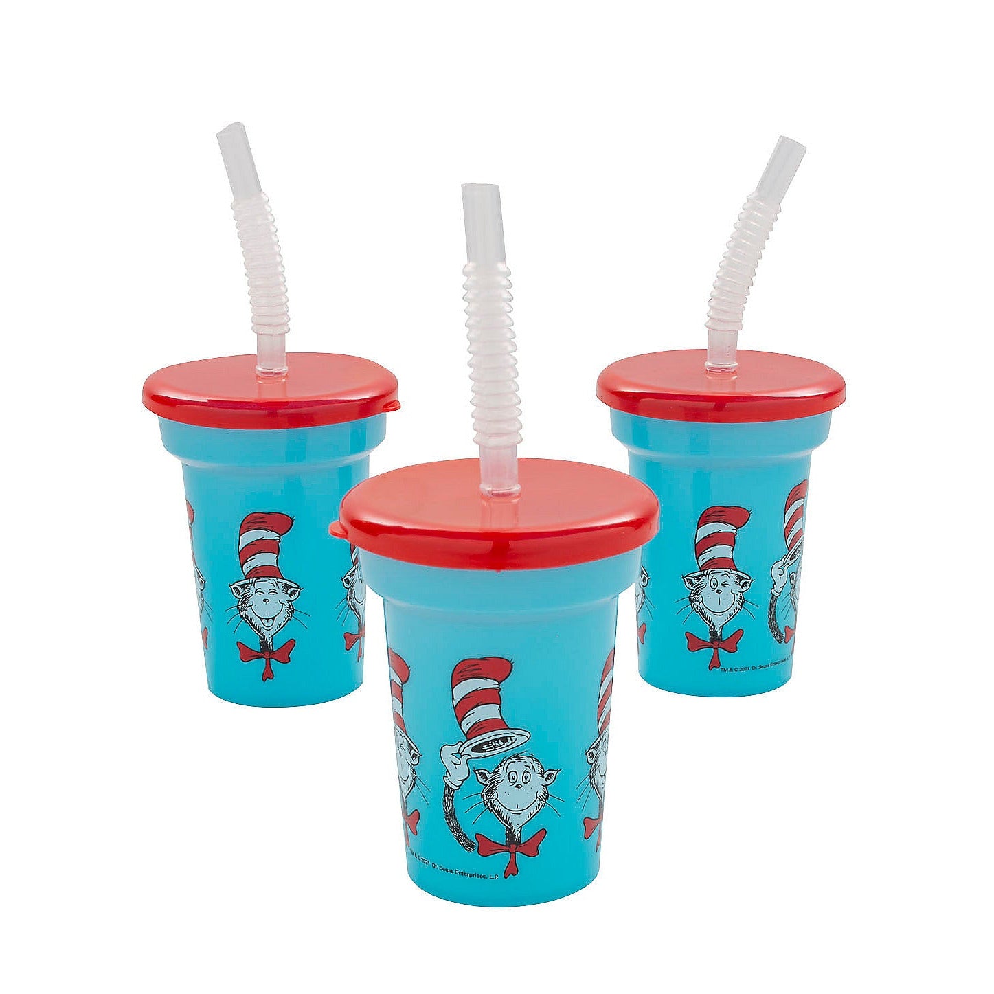 Celebrate in style with these Mini Whimsical Striped Christmas Hat The Cat in the Hat Reusable Cups! Each cup holds 6 oz. and features a playful Cat in the Hat design, making them perfect for kids' parties and gatherings. With bright red lids and bendy straws, these cups are both fun and functional, ensuring little ones enjoy their drinks with ease. Perfect for party favors or as part of your tableware set, these cups bring joy and whimsy to any event.