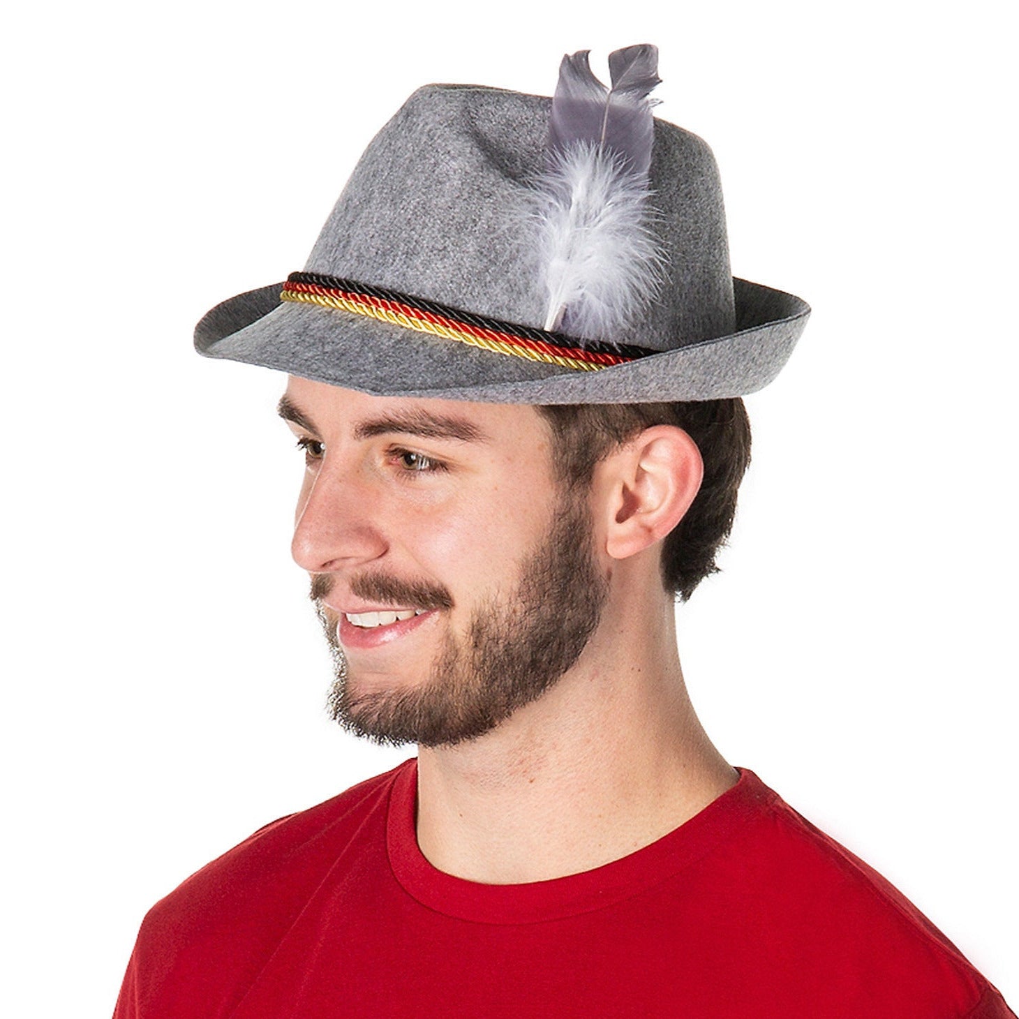 Complete your Oktoberfest ensemble with this stylish 23 1/2" Gray German Alpine Felt Hat with Feather. Perfect for pairing with lederhosen or casual attire, this traditional Bavarian hat adds authenticity and flair to your festival outfit. Whether you're celebrating Oktoberfest, attending a German-themed event, or simply enjoying a festive occasion, this felt hat ensures you stand out in style.