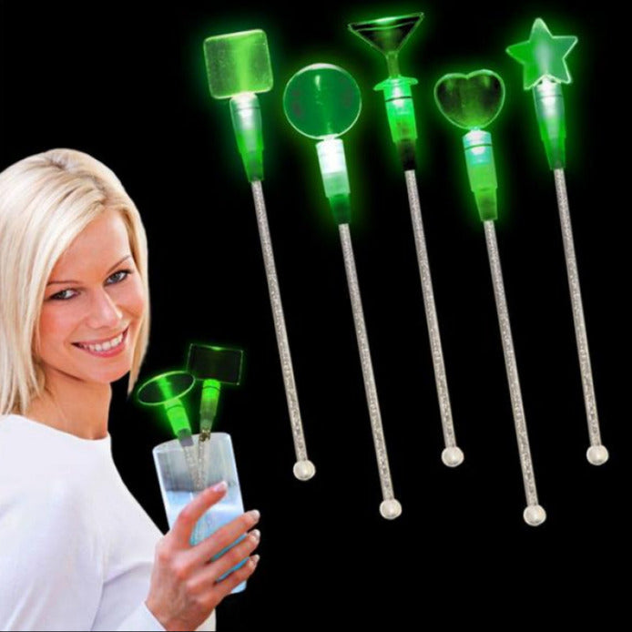 Add a festive glow to your drinks with our Green LED Cocktail Stir Sticks! Perfect for St. Patrick’s Day, Christmas parties, Mardi Gras, and green-themed events, these 9-inch light-up stirrers bring vibrant color and fun to any celebration. Each plastic stir stick features a clear stem with a high-powered green LED on the tip, and you can choose from a variety of fun toppers, including oval, square, star, circle, heart, rectangle, or martini shapes. Whether you’re mixing signature cocktails or highlighting drinks at a bar or party, these glowing green stirrers are sure to impress!