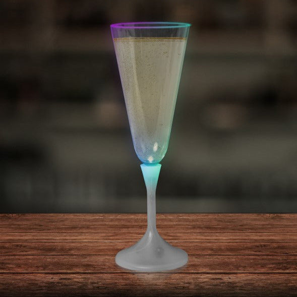 Add a sparkling touch to your celebration with the LED 7 oz Champagne Glass With White Stem. This multi-color light up champagne flute features red, green, and blue LEDs that can flash, rotate, or glow steadily to match any party vibe. Whether you're hosting a wedding, holiday event, or nightclub gathering, this eye-catching novelty party glass brings instant energy and color to every toast. Sleek and stylish with a white stem, it’s perfect for upscale or fun occasions where presentation matters. Batteries come pre-installed, so it’s ready to light up right out of the box.