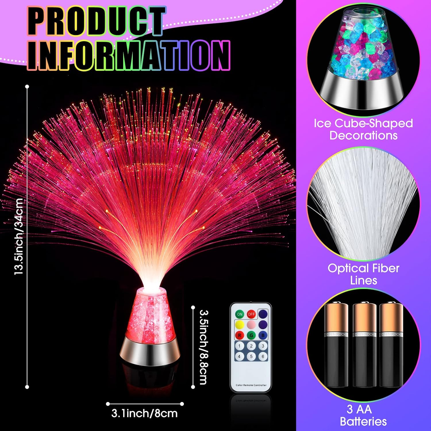 Creative Ice Cube Shape and Colorful Optical Fiber: the base of the fiber optic night light consists of a battery compartment that provides enough energy, and a warehouse containing many small ice cube shaped decorations, quite attractive and pretty; Thousands of optical fibers are designed to form a bundle, when you insert it securely into the base, it unfolds and displays brilliant colors