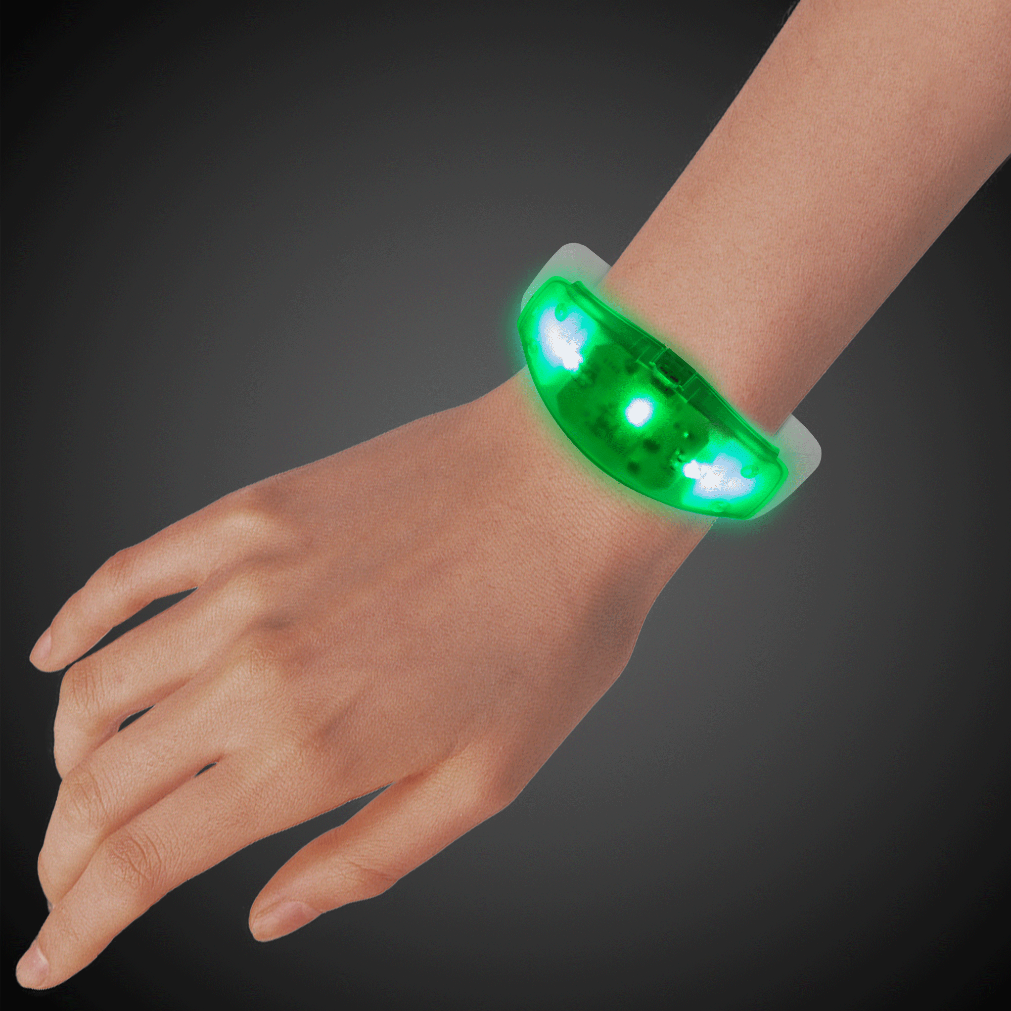Brighten up your event with our LED Green Stretchy Bangle Bracelet – a glowing, flexible accessory that’s perfect for parties, school events, St. Patrick’s Day, concerts, and more. Each green LED bracelet features three brilliant lights that can be set to steady on, fast flash, or slow flash modes with the press of a button. Made from a soft, stretchy material, this light up bracelet offers a snug yet comfortable fit for most wrist sizes, making it a fun and wearable glow item for guests of all ages. With batteries already installed, these bracelets are ready to shine straight out of the pack – no setup required.