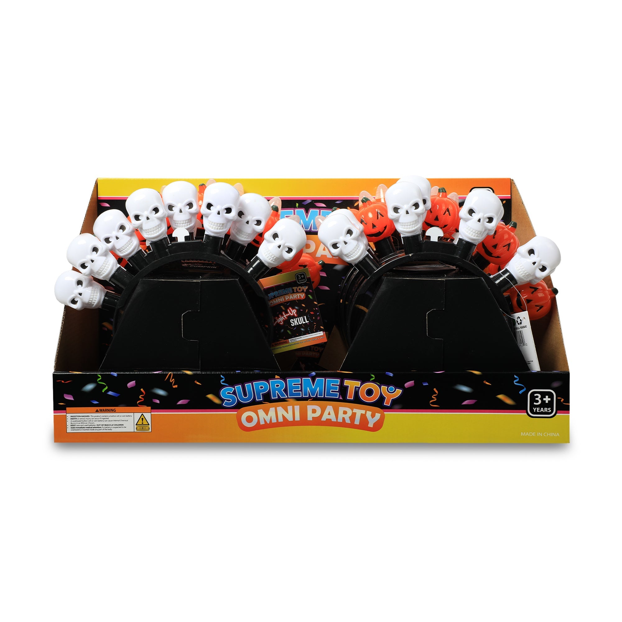 Light up your seasonal sales with our LED Halloween Headbands Retail Counter Display — a fun and festive assortment of glow-in-the-dark headbands perfect for kids and adults alike. Each 12-piece display includes 4 pumpkin, 4 candy corn, and 4 skull headbands, each powered by pre-installed CR1220 batteries for instant illumination. These playful, eye-catching accessories are perfect for Halloween parties, trick-or-treating, costume add-ons, or spooky giveaways. Ideal for retailers, party stores, and seasonal pop-ups looking to drive impulse buys and boost Halloween accessory sales.
