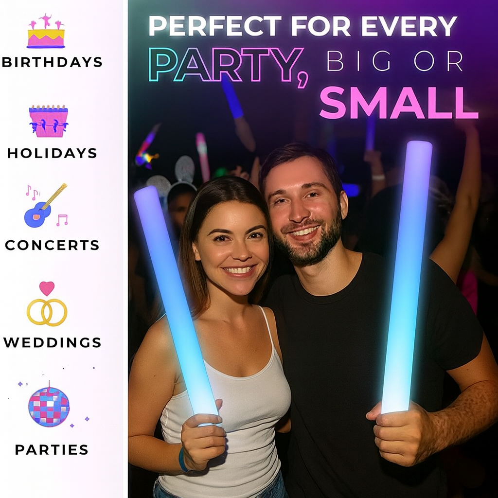 There are so many amazing products to be used in parties but the best ones are light in weight, colorful in appearance and durable. If you are looking for such a lighted product then you have come to the right place. The LED flashing lights foam sticks are high in quality and you can buy them without having to go anywhere. The discounts on each product is dependent on the order quantity you put in the cart. Buy light up foam stick batons in bulk and avail more discounts along with free shipping option.