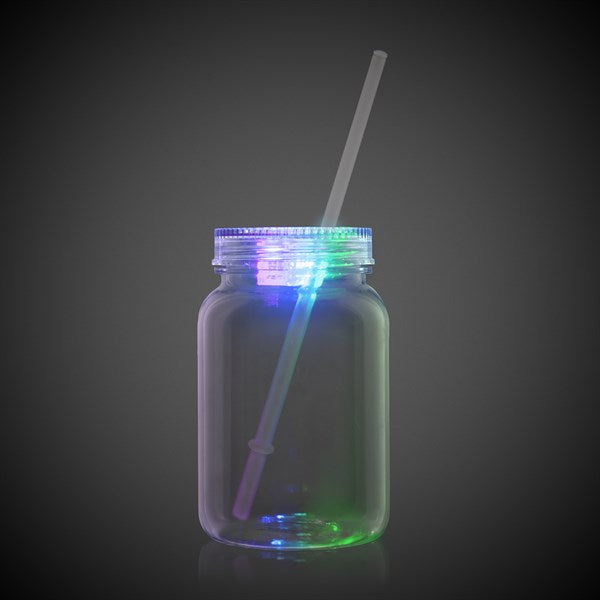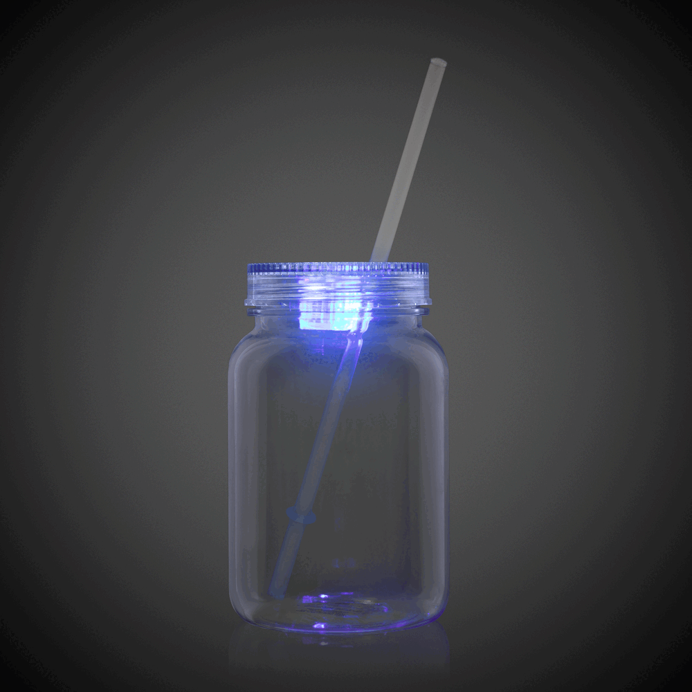 Light up your drinks in style with the LED Light Up 20 oz Mason Jar with Lid and Straw. This clear plastic mason jar features built-in multicolor LED lights in the lid, turning any beverage into a glowing showpiece. Ideal for weddings, birthday parties, outdoor gatherings, or any nighttime event, this reusable LED jar is both fun and functional. With multiple light settings and a durable design, it's the perfect glow-in-the-dark party cup to make your event unforgettable.