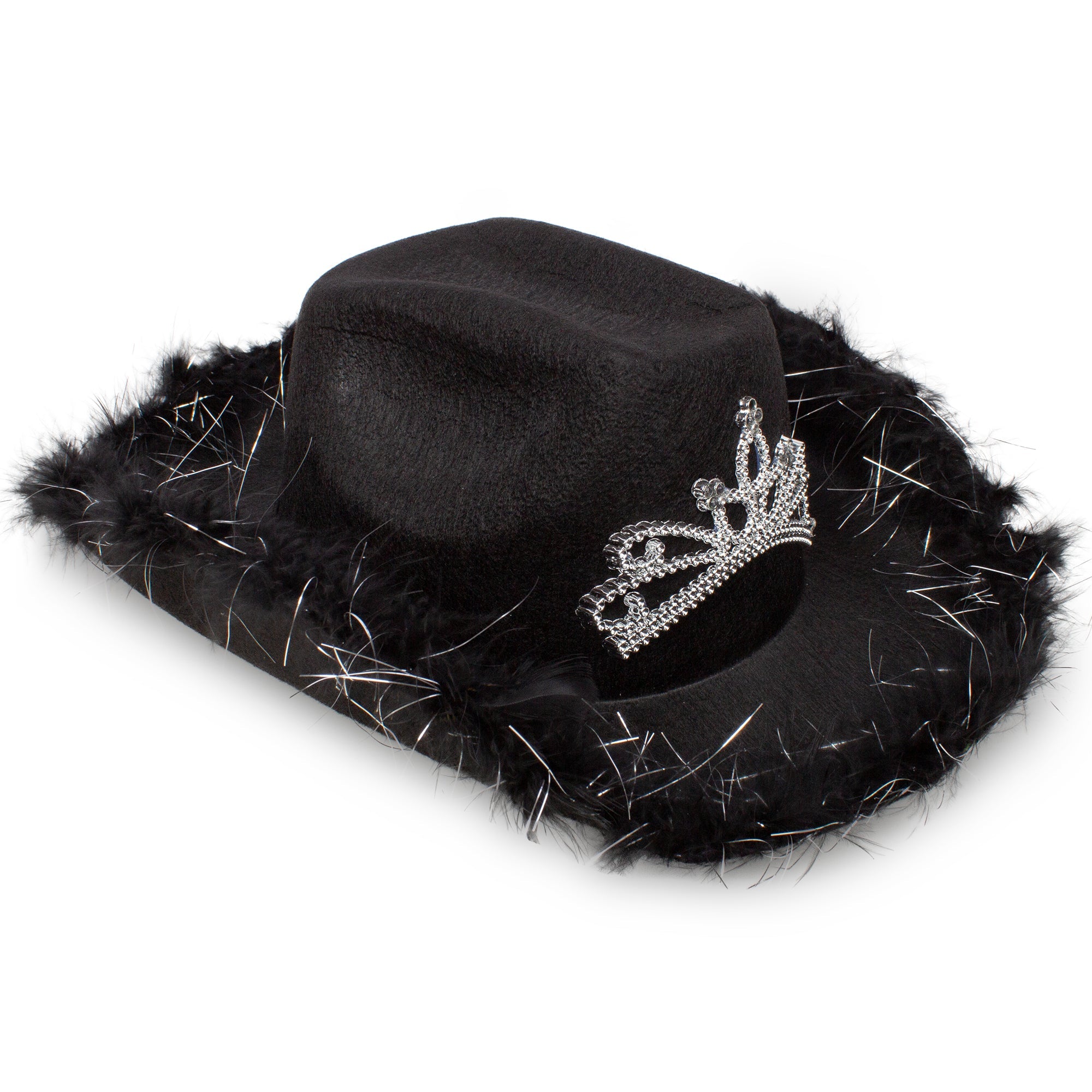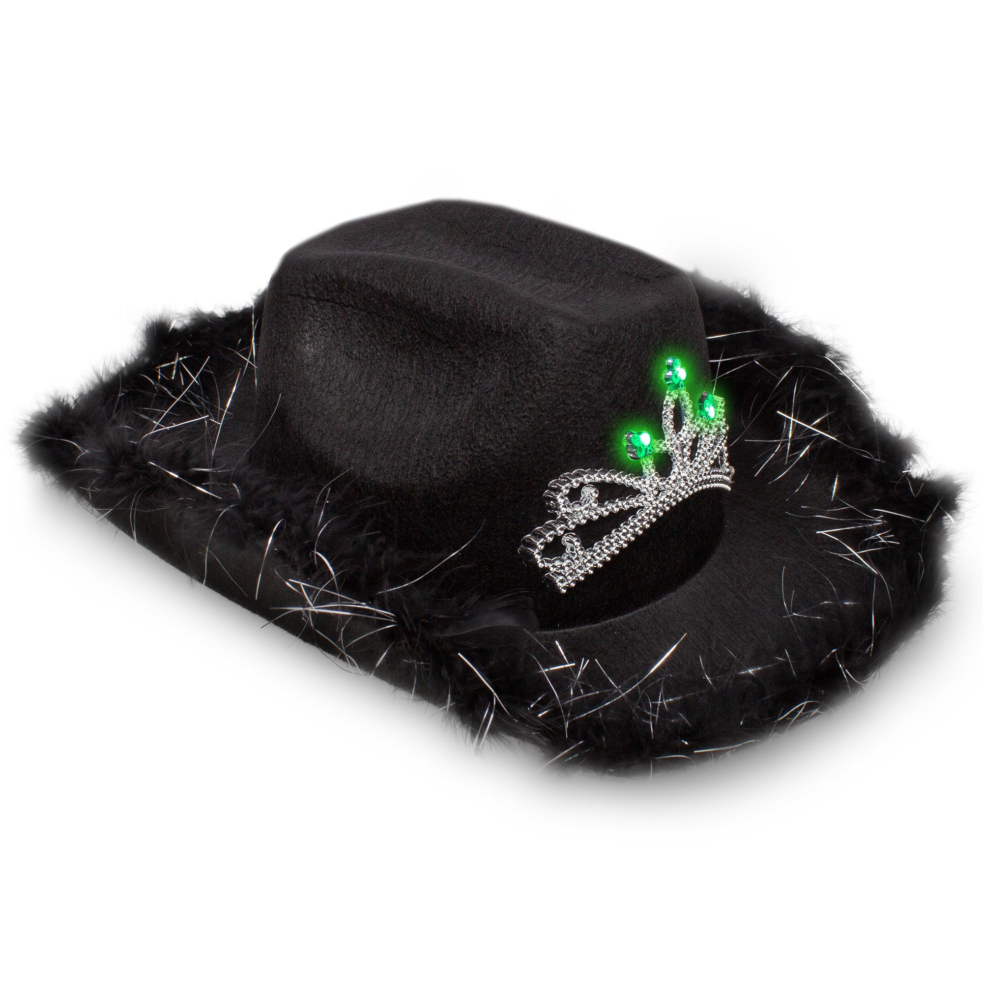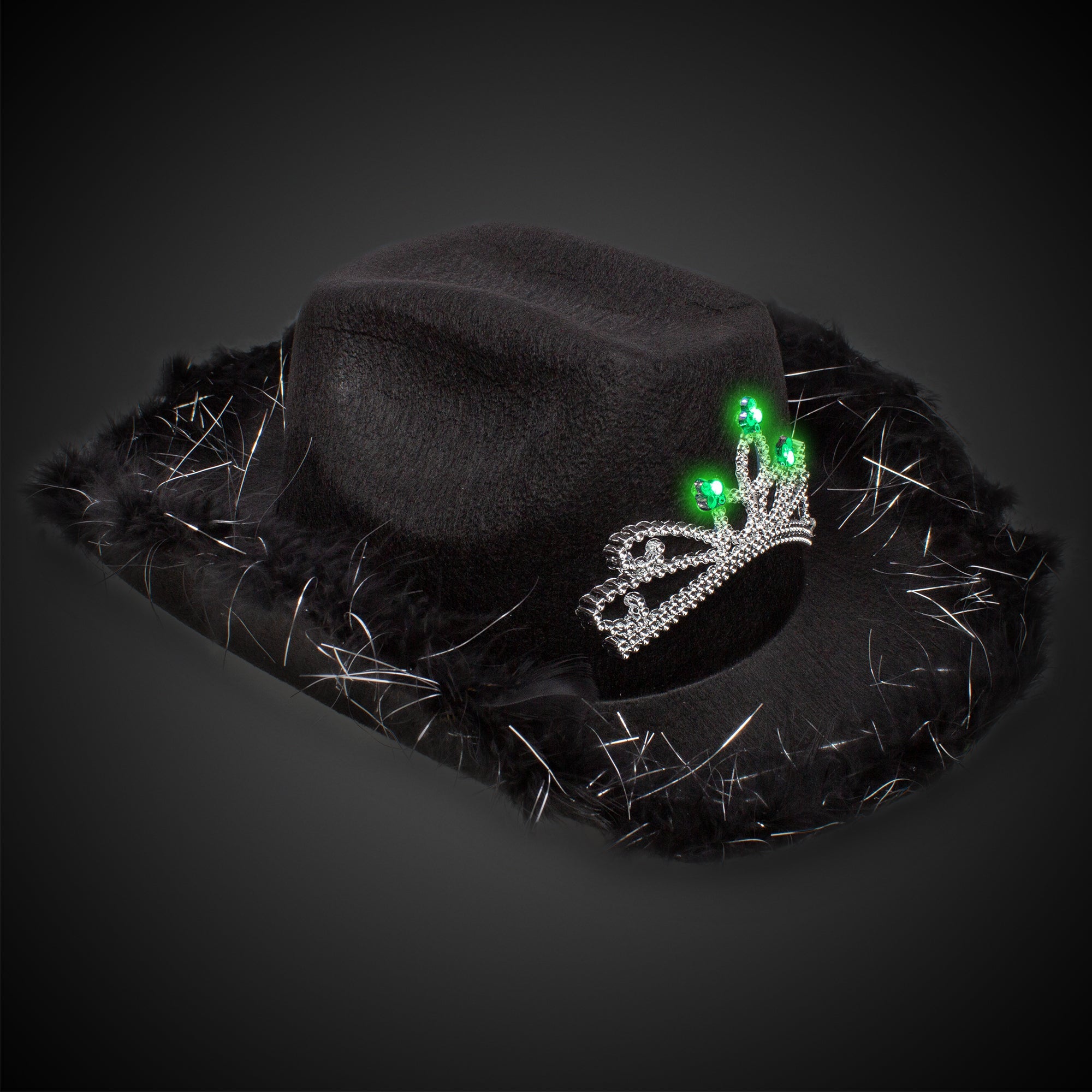 | Product Name | LED Light Up Black Feather Cowboy Hat With Tiara |