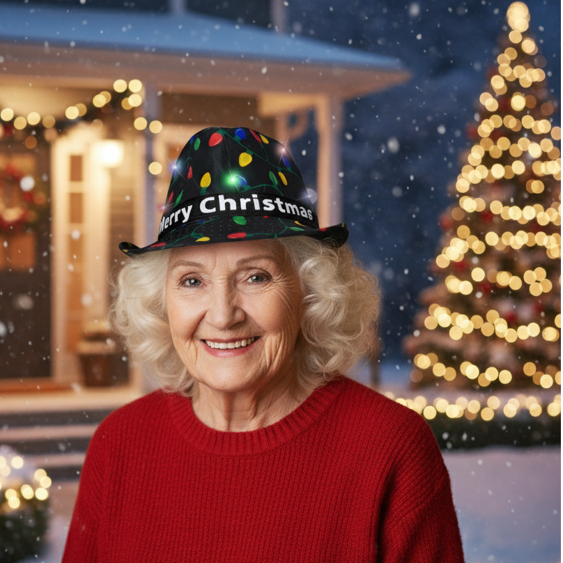| Product Name | LED Light Up Merry Christmas Fedora Hat |