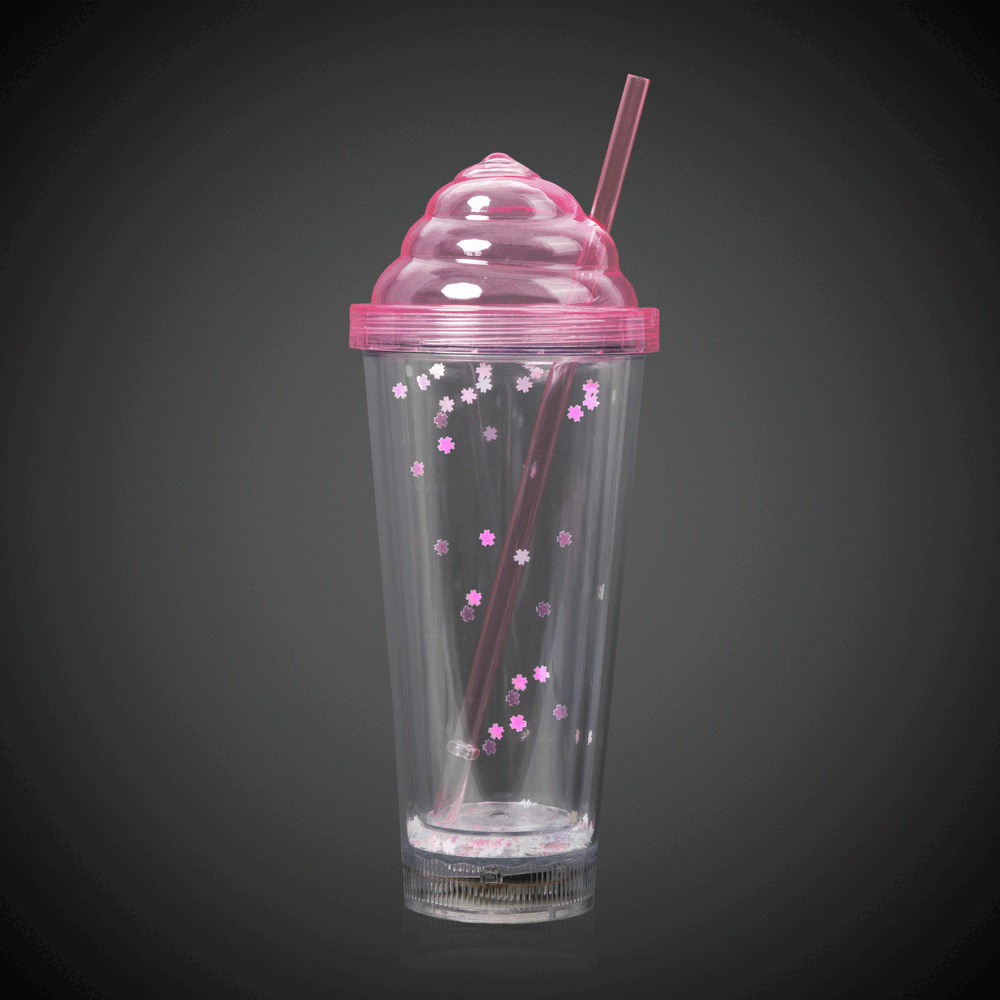 Serve up sweetness and sparkle with our LED Pink Ice Cream 13 oz Tumbler! Designed to look like a delicious soda float, this fun pink tumbler lights up with built-in LEDs to create a glowing drink experience that's perfect for birthday parties, girls' night, ice cream socials, and glow events. It comes complete with a lid and straw for easy sipping and includes pre-installed batteries so the glow fun starts instantly.