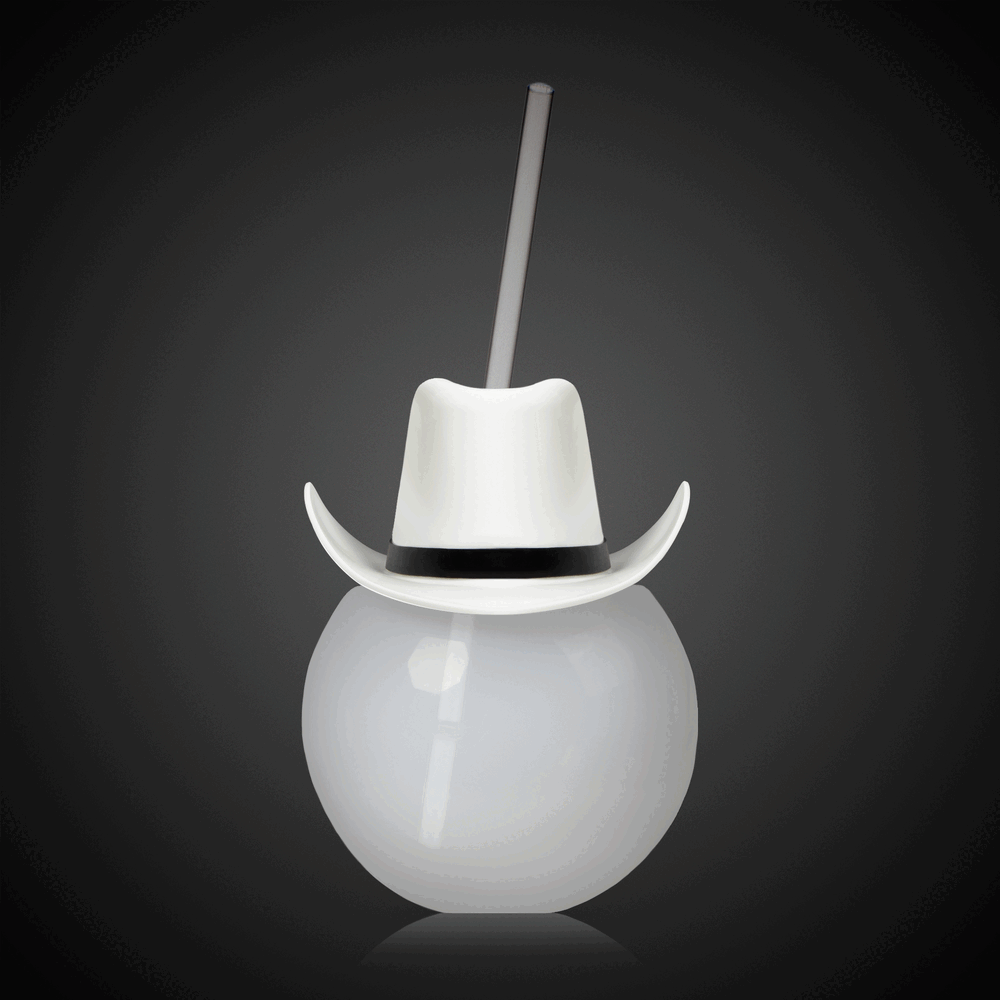 Giddy up your drinks with a dazzling Western twist using the LED White Cowboy Hat Ball Cup with Straw. This 20 oz. light-up novelty cup features a crisp white cowboy hat lid and a built-in straw, making it perfect for country parties, bachelorette nights, rodeos, festivals, and themed celebrations. Equipped with 3 bright LED lights and multiple light modes, this glowing cowboy hat cup turns any drink into the life of the party. Whether you're sipping cocktails or mocktails, it’s a must-have western party accessory for guests of all ages.