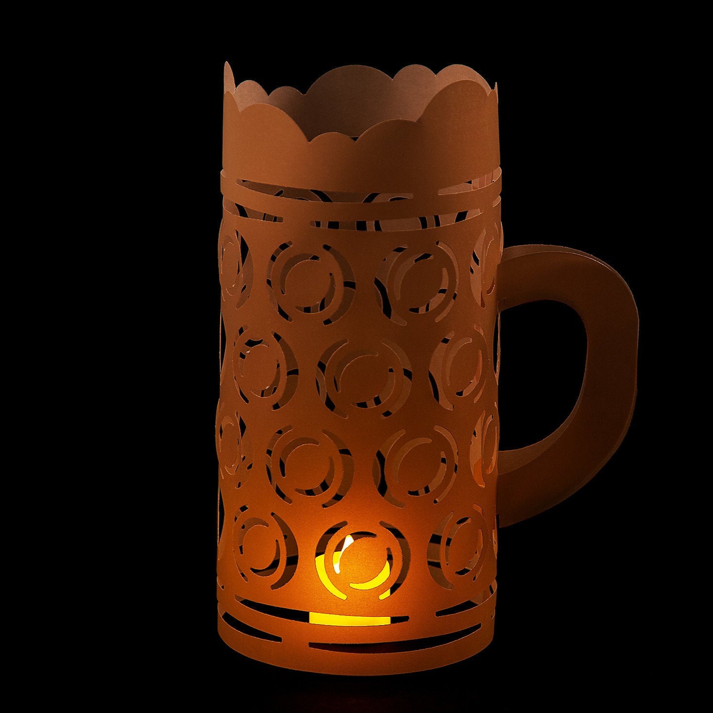 Illuminate your Oktoberfest celebration with Oktoberfest Beer Mugs Lantern Luminary Wraps. This 12-piece set of festive plastic beer mug wraps features cutouts that allow candlelight to shine through, creating a warm and inviting party atmosphere. Simply insert your own tea lights (sold separately) into the center of each wrap and place them around your party space to add charm and ambiance. Perfect for Oktoberfest parties, beer festivals, backyard gatherings, or themed events, these luminary wraps are a simple way to enhance your décor with a cozy Bavarian glow.