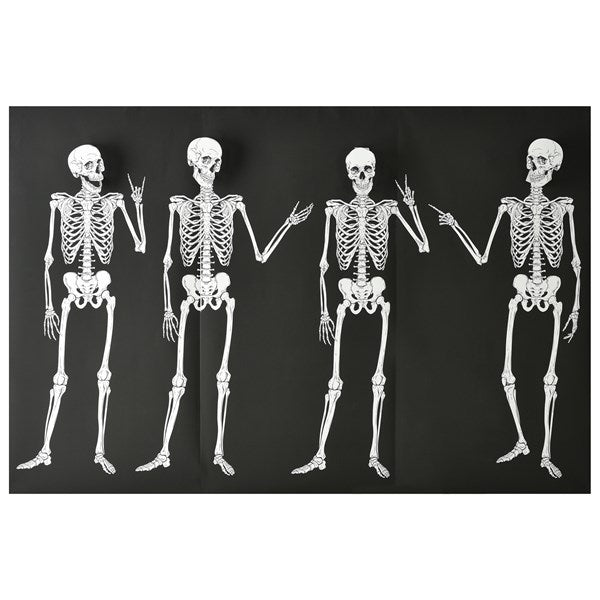 Transform any space into a spooky celebration with our Skeletons Backdrop – the perfect Halloween wall decoration for parties, photo booths, and haunted house setups. This fun and easy-to-install scene setter features playful dancing skeletons and paper skull add-ons that create the ultimate festive vibe. Measuring 65" high by 100.5" wide when fully assembled, it's ideal for indoor or outdoor use at Halloween parties, school events, office gatherings, or themed home décor. Designed for quick setup and removal, it brings big Halloween impact without the hassle.