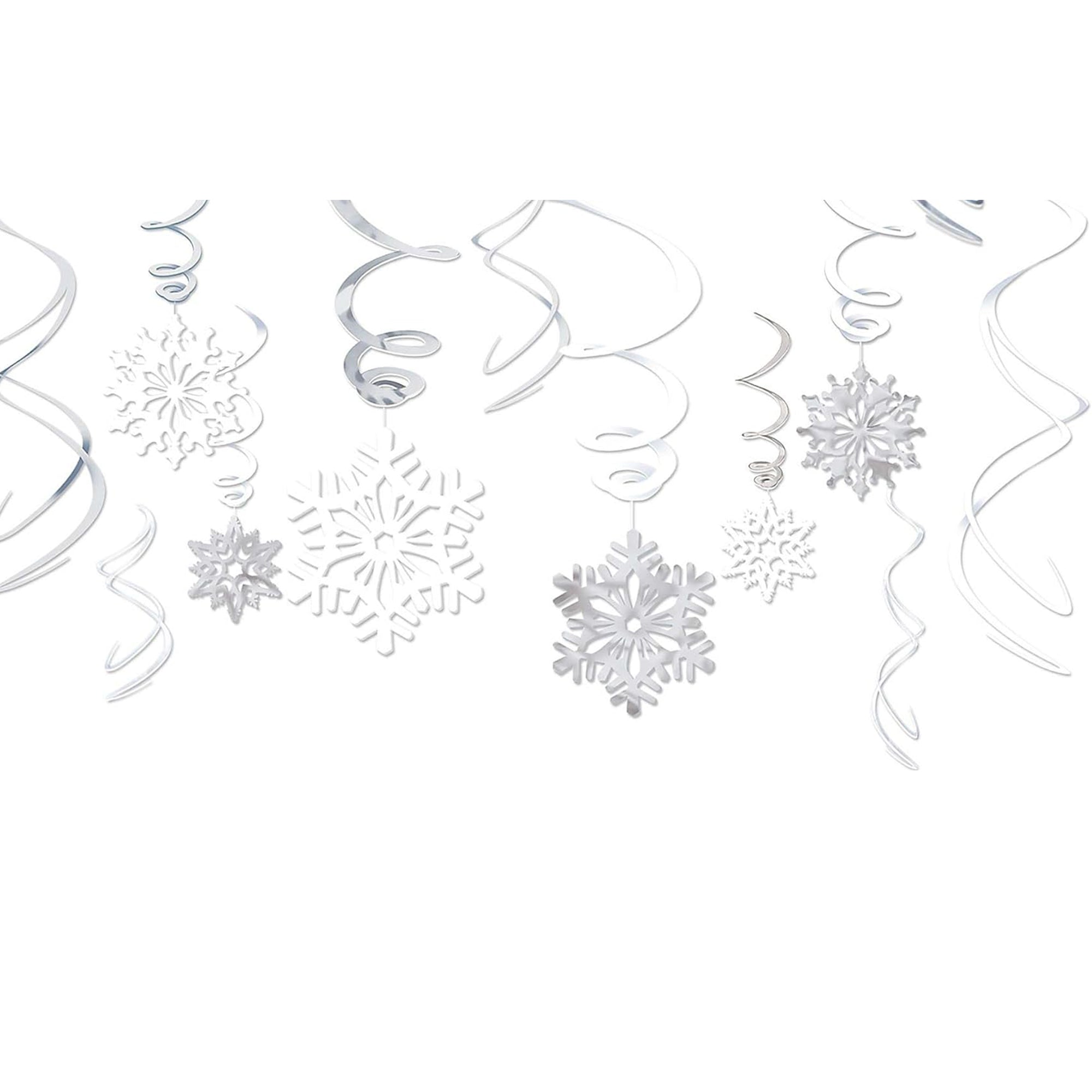 Add sparkle and movement to your holiday décor with our Snowflake Metallic Swirl Decorations! These shimmering silver swirls are perfect for transforming any room into a Winter Wonderland. Designed to reflect light beautifully, they add a romantic and magical touch to Christmas parties, winter weddings, or festive events. Each pack includes 12 hanging decorations in assorted styles and sizes, making it easy to create a layered, eye-catching display for your holiday celebrations.